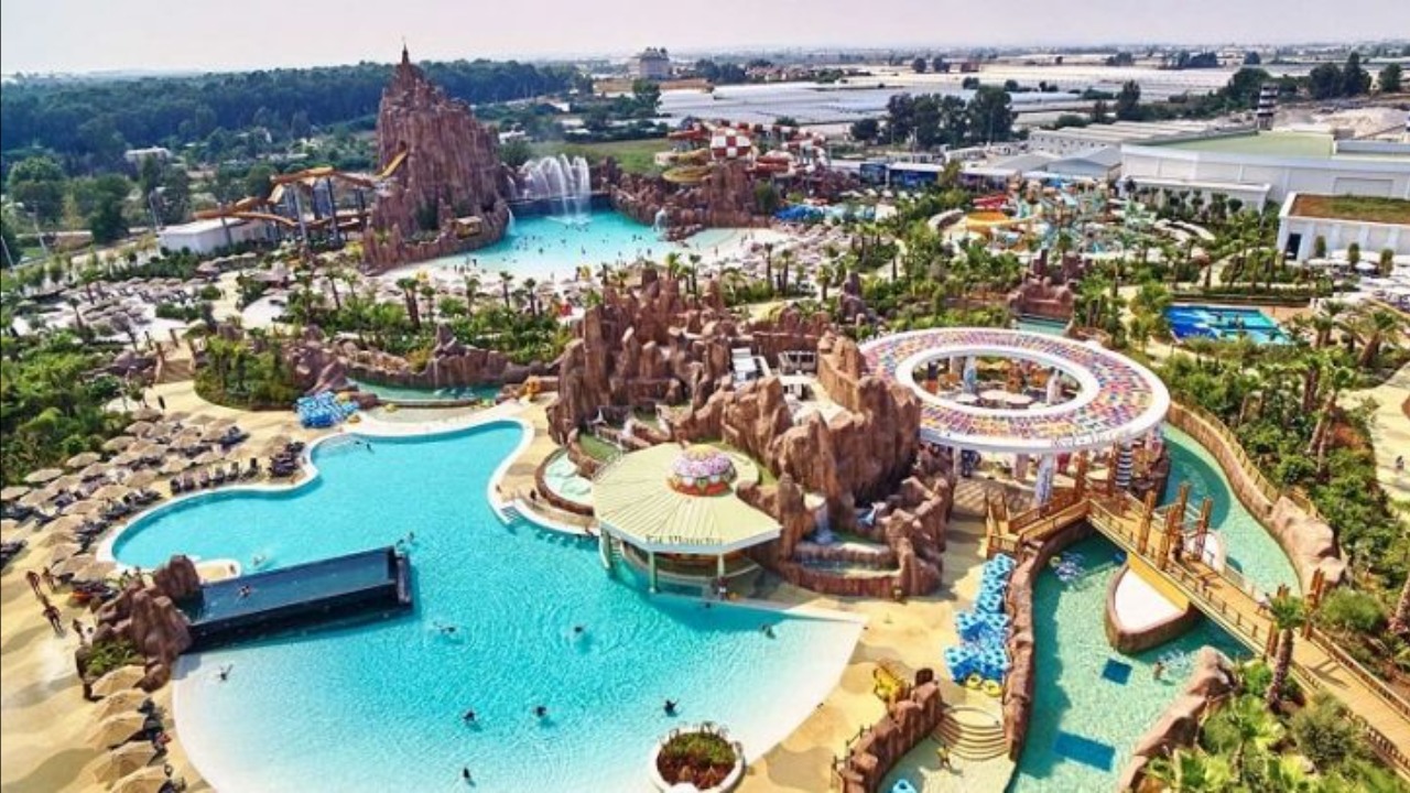 На территории расположен аквапарк, в котором около 40 различных водных аттракционов. В аквапарке есть несколько бассейнов, обычные и с волнами и Ленивая река. Аквапарк хорошо подходит для всей семьи, так как есть экстремальные горки для взрослых и отдельно выделенная территория для детей с горками и фонтанами.